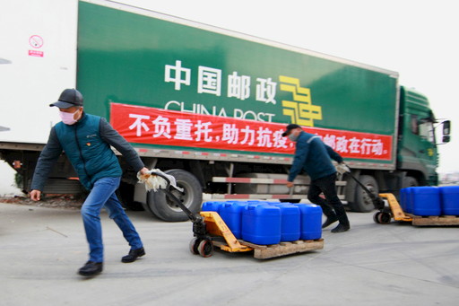 2月1日傍晚,江苏省淮安市邮政分公司有一批防疫物资(12吨消毒液)发往武汉。在当天的作业组织中,该分公司两名党员驾驶员李训林和余洪耀积极服从调度,在消毒液生产企业协助装运,确保了物资出库、装车不间断进行,为物资第一时间运送赢得了宝贵时间。经过12小时的车程,2月2日8点,邮车到达受捐赠单位。交接物品结束后,二人启程返回淮安,到达后直接到隔离点接受观察。□吉尔云 刘春平 摄影报道