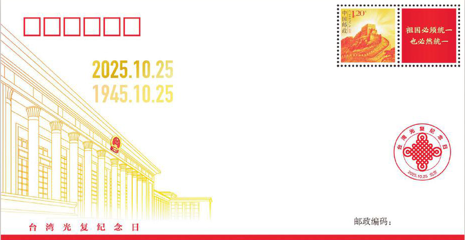 10月25日,《台湾光复纪念日》纪念封发行。该纪念封由中共中央台湾工作办公室监制,中国集邮有限公司发行,贴《长城》个性化服务专用邮票,印纪念戳。